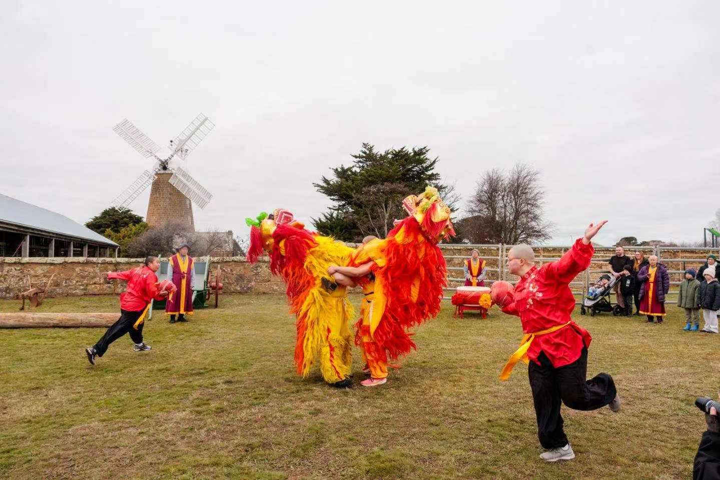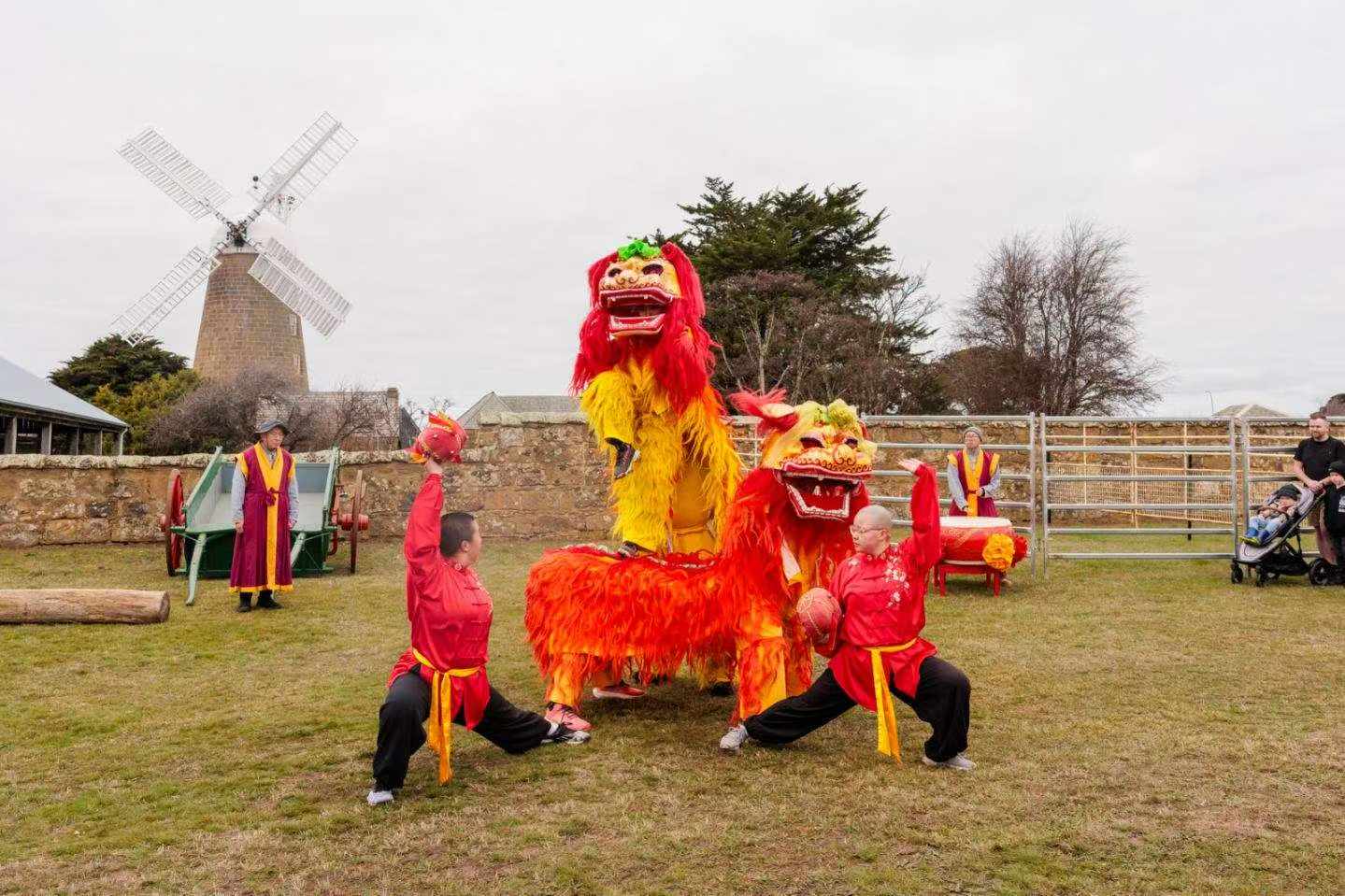 坎佩尼亚连续数天的公牛节和文物节〝中国佛教舞狮〞广受欢迎。