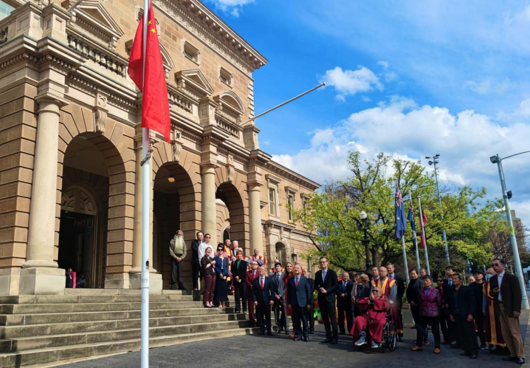 On October 1, Consul General Fang Xinwen attended the reception hosted by Hobart City Council in Tasmania's capital, Hobart, to celebrate the 76th anniversary of the founding of the People's Republic of China and the 53rd anniversary of the establishment of diplomatic relations between China and Australia. Nearly 100 people from all walks of life, including Cr Ryan Posselt, representing Lord Mayor Anna Reynolds, Councilors and Alderman of Hobart and other cities, officials, business leaders, Chinese community leaders, artists, religious and friendship associations, attended the reception. A flag-raising ceremony was held in front of Town Hall before the event.