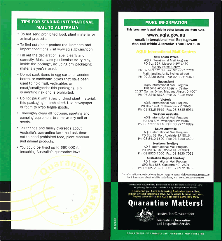 What can't be mailed to Australia