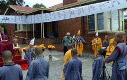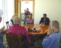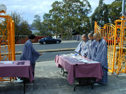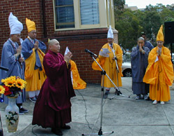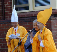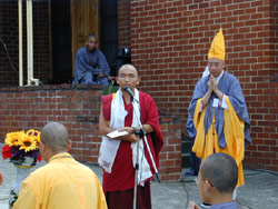 侍 衛 長 金 剛 惠 嫻 長 老 , 副 侍 衛 長 金 剛 龍 聖 資 深 上 師 , 翻 譯 金 剛 法 誠 侍 衛 長 。