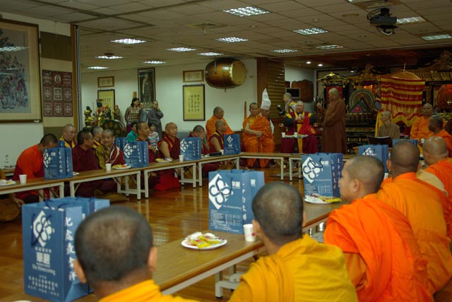 尊 敬 的 Most Venerable 普 觀 方 丈 尊 敬 的 斯 里 蘭 卡 僧 伽 委 員 會 理 事 長 Most Ven. Maduluwawe Sobitha Maha Thero 尊 敬 的 世 界 佛 教 青 年 僧 伽 會 秘 書 長 Most Venerable Anuruddha Thero 大 法 師 尊 敬 的 各 國 Most Venerable 高 僧 尊 敬 的 各 位 Venerable 法 師 們 尊 敬 的 各 位 居 士 們 、 護 法 們 : 我 們 中 國 漢 傳 密 宗 聖 密 宗 金 剛 禪 佛 教 , 很 高 興 能 夠 來 到 大 華 嚴 寺 這 一 華 嚴 聖 境 。 也 很 感 謝 尊 敬 的 Most Venerable 普 觀 方 丈 為 我 所 安 排 的 特 別 法 座 ── 龍 椅 。