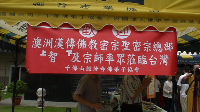 與 隨 行 弟 子 六 位 , 不 遠 千 里 參 禮 當 代 禪 密 大 成 就 者 ── 千 佛 山 方 丈 曼 殊 師 利 佛 化 身 大 聖 寶 上 白 下 雲 老 禪 師 。